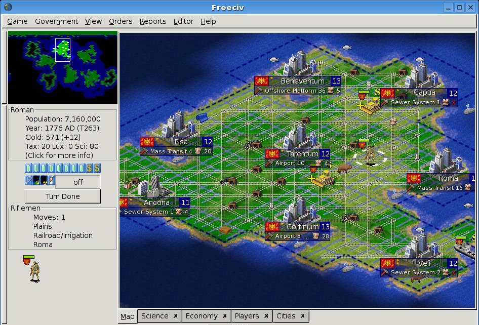New graphic, and some useful improvements like visual tech tree and stuff will probably get FreeCiv the status it deserves. When I tried to get some of my friends to play it before, they would comment that graphics is awful (although IMHO it wasn’t that bad), and they wouldn’t even try. I played the current development version with one of them, and she’s thrilled about that way everything looks and works now. I guess, all FreeCiv lacked before was some eye-candy.