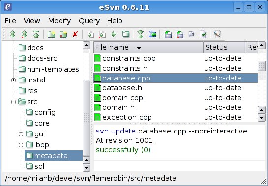 Anyway, from all those, I prefer eSVN for its user interface. It is clean - so it’s easy to spot the changes, and it doesn’t flicker like RapidSVN. KDEsvn seems quite good, but it has a lot of background “syncing” with the repository (I think I’ve seen the option to turn it off, but didn’t bother). Why do tool makers add some extra-cool-whatever-used-by-nobody features instead of adding the esential ones? It really escapes me.