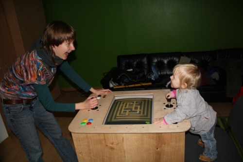 I got this photo from one of my users. They created a nice box, placed a big CRT monitor inside, turned facing up, and added two controllers. Njam for the whole family.
